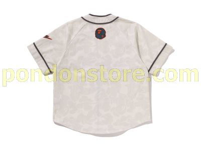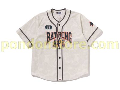 A BATHING APE : SOLID CAMO MULTI LOGO BASEBALL SS SHIRT ivory