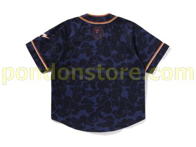 A BATHING APE : SOLID CAMO MULTI LOGO BASEBALL SS SHIRT navy