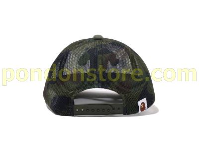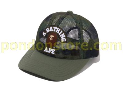 A BATHING APE : 1ST CAMO COLLEGE PATCHED MESH CAP green