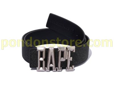 A BATHING APE : REVERSIBLE LEATHER BELT black