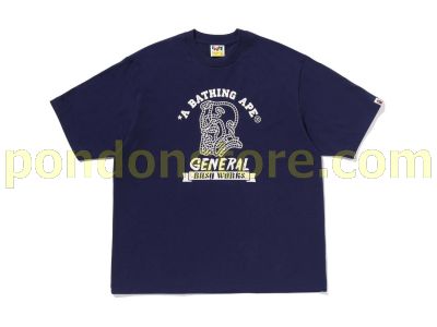 A BATHING APE : APE GENERAL COLLEGE RELAXED FIT TEE navy