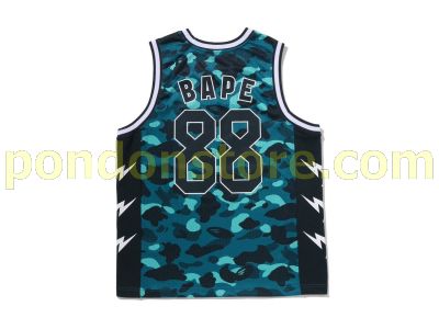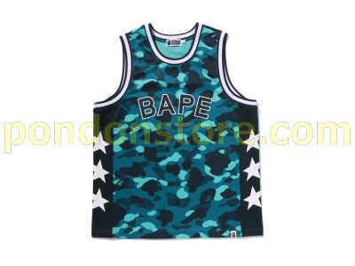 A BATHING APE : COLOR CAMO MESH MULTI LOGO RELAXED FIT TANK TOP green