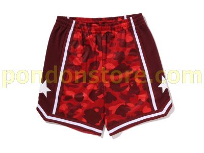 A BATHING APE : COLOR CAMO MESH RELAXED FIT SHORTS red