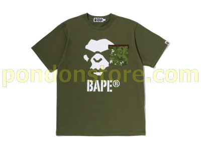 A BATHING APE : MULTI PIXEL CAMO MAD APE FACE POCKET TEE olive