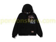 A RISING BAPE PATCHWORK HOODIE WORK JACKET black